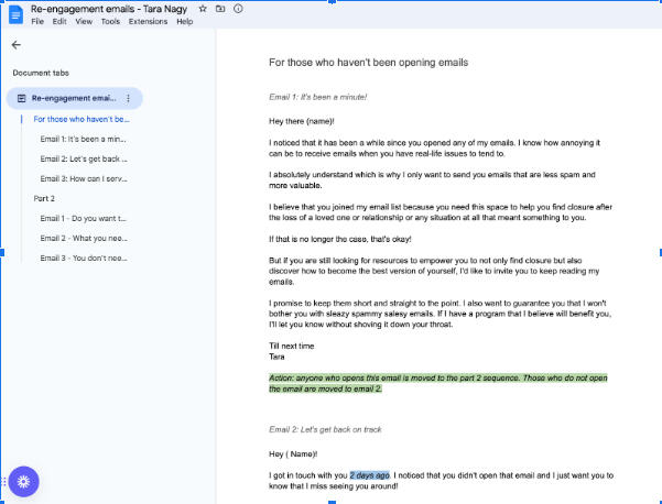 Created a 4-week email sequence tailored to Tara’s audience using Grammarly to ensure high-quality copy.